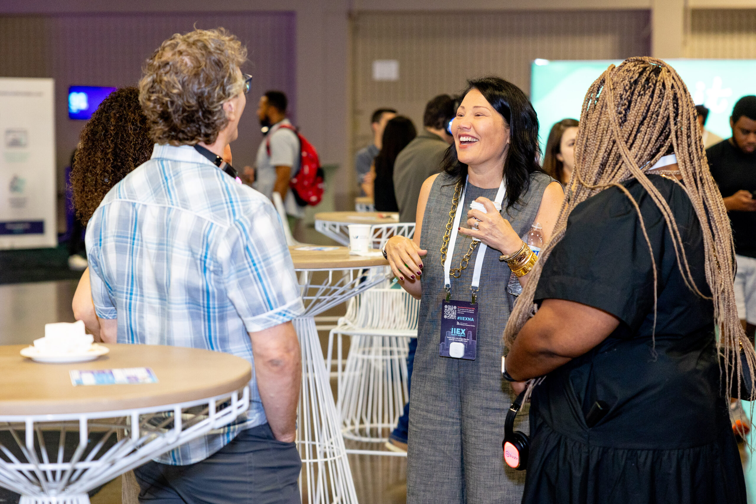 Even better, bring in some sofas for your guests. Who says you can’t kick back and relax while listening to a keynote? At one of IIEX’s stages, sofas were set closest to the stage and cocktail tables and bistro tables were alternated behind. This layout allows for planting yourself on a couch to listen for a while, or just stopping in to catch a few minutes of a presentation.