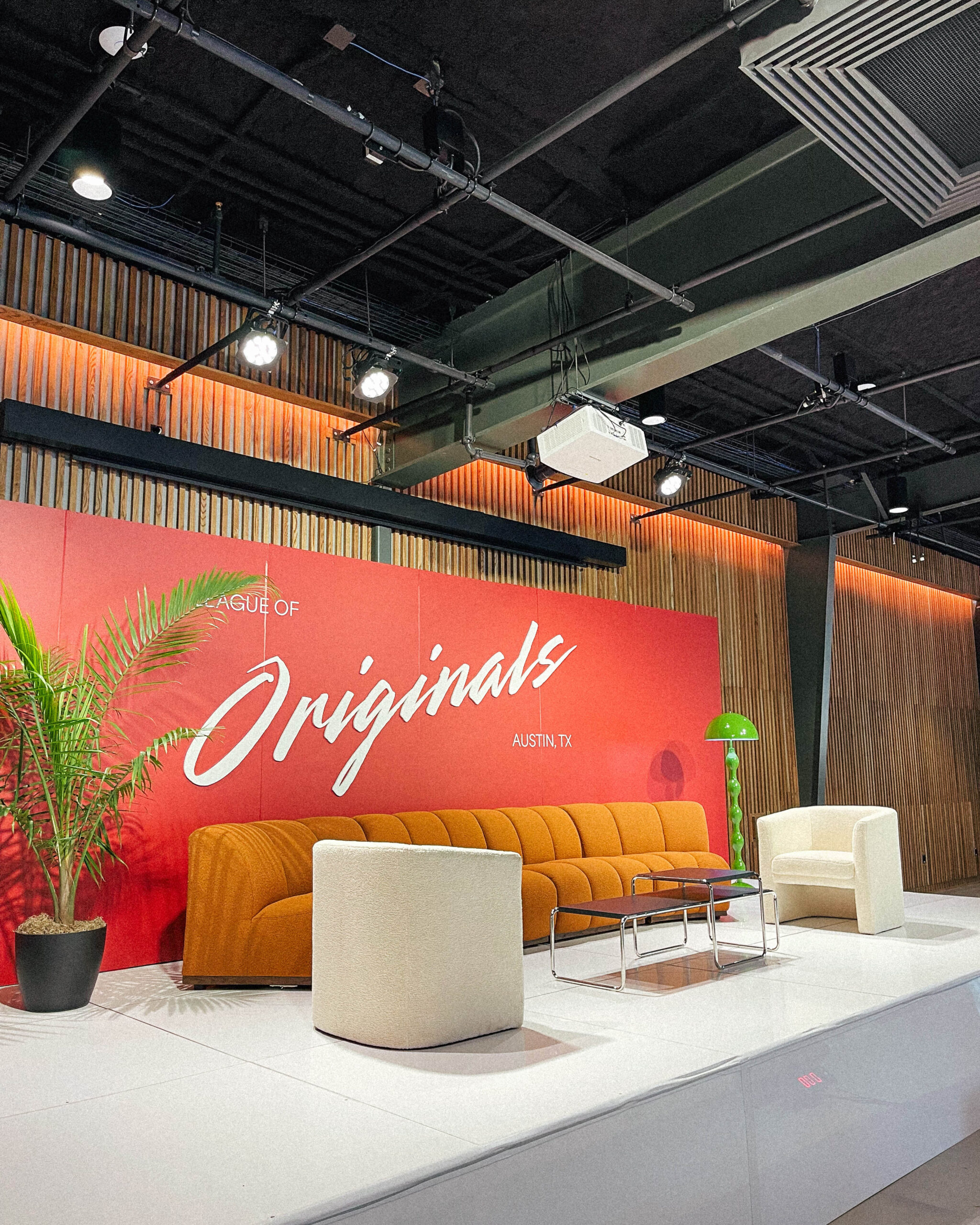 League of Originals hosted their Austin brand summit at Assembly Hall, which is a big, beautiful blank canvas. We filled the space with custom moments and rentals that highlighted their brand and would love to walk you through the satisfying before and afters to show you how to brand an event!