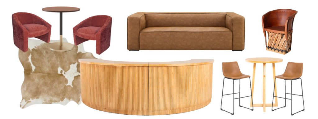 If you’re throwing an event at Stable Hall, you’ve probably booked talent to take the stage. Instead of folding chairs for your audience, use lounge to spice things up a bit! Pair luxe velvet lounge chairs like our Napoleon Lounge Chair with our Chaplin Bistro Tables, alternate with our light wood Fernet Cocktail Tables and Cognac Bar Stools to incorporate some leather for a western vibe.