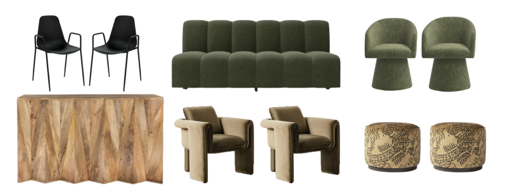 Choose modern dining chairs like our Dark n’ Stormy for wedding ceremony seating or corporate event audience seating. Call back to the greenery surrounding the sculptures on the lawns by designing lounges with our earthy, green Death in the Afternoon Banquets. Add cool details like our Fancy Free Ottomans to show your guests you really care about the design and are willing to take artistic risks.
