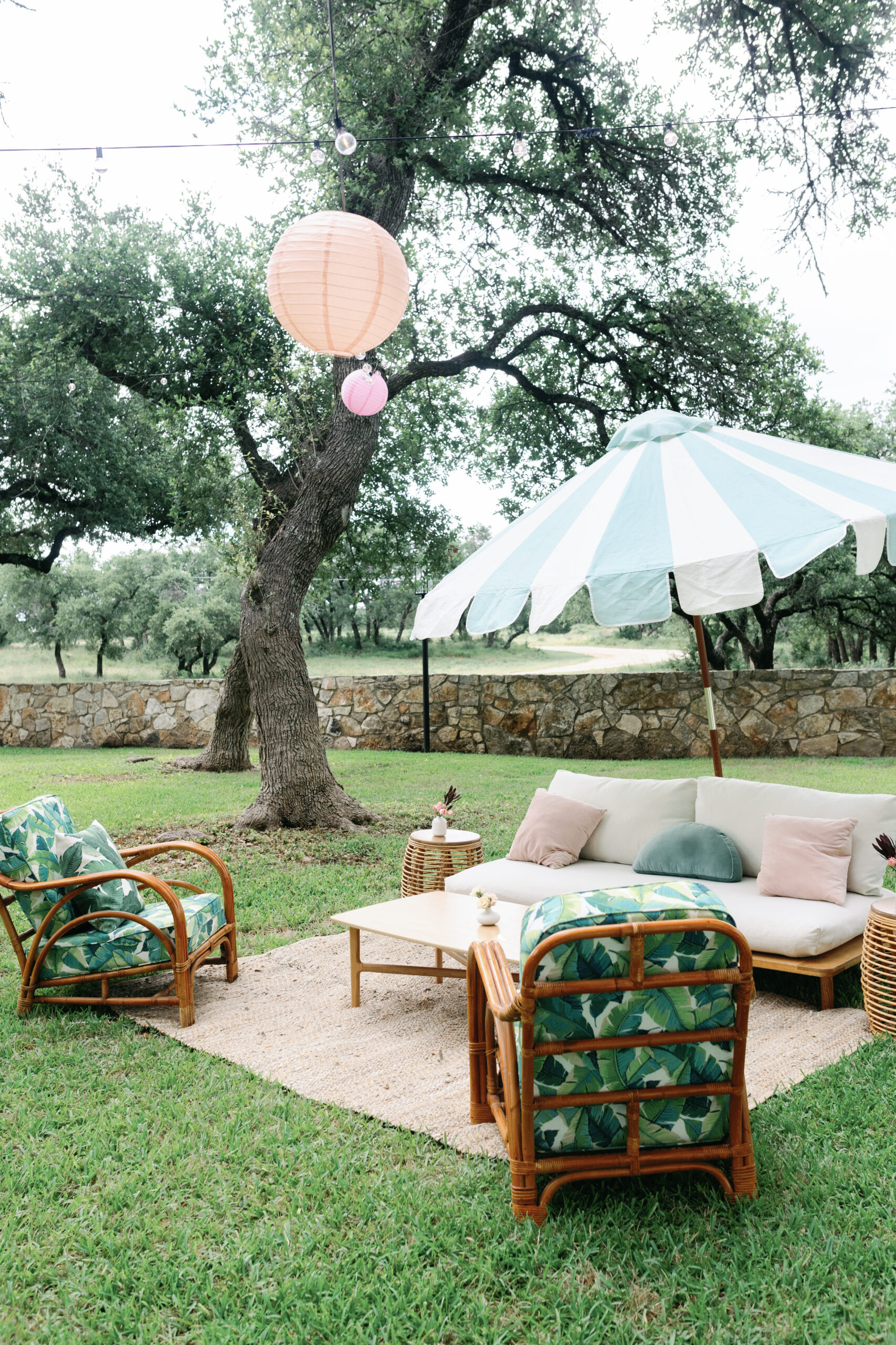 The Addison Grove‘s Sip and See theme of “Vintage Palm Springs” was calling our name this summer. Mid-century modern design meets a beautiful Texas Hill Country venue—the perfect opportunity to showcase that you can take our Austin-modern rentals outside of the city limits to mesh contemporary with natural, Texas aesthetics.