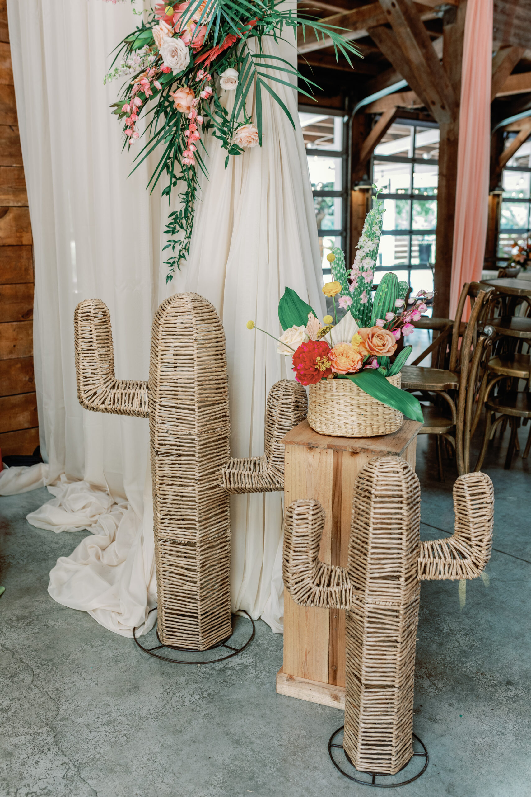Combine mid-century modern architecture and decor, desert influences, and a vibrant, retro vibe and you have Palm Springs! Welcoming guests with decor like our Rattan Cactuses is essential to achieving this look.