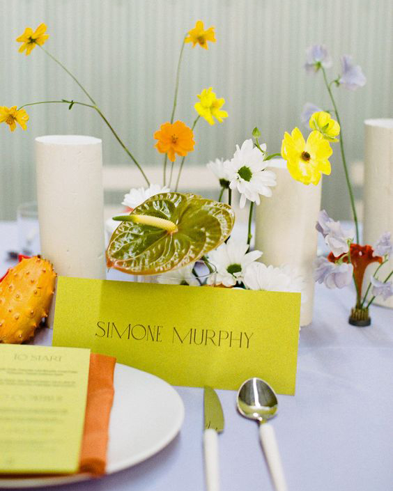 We could see this coming with Pantone’s color of the year prediction, Peach Fuzz. The thing we love about peach is that it plays well with other colors. Pair it with bright yellows and lavender for a super fun, funky setup or tone it down as a beautiful accent in your florals if you’re leaning more classic.