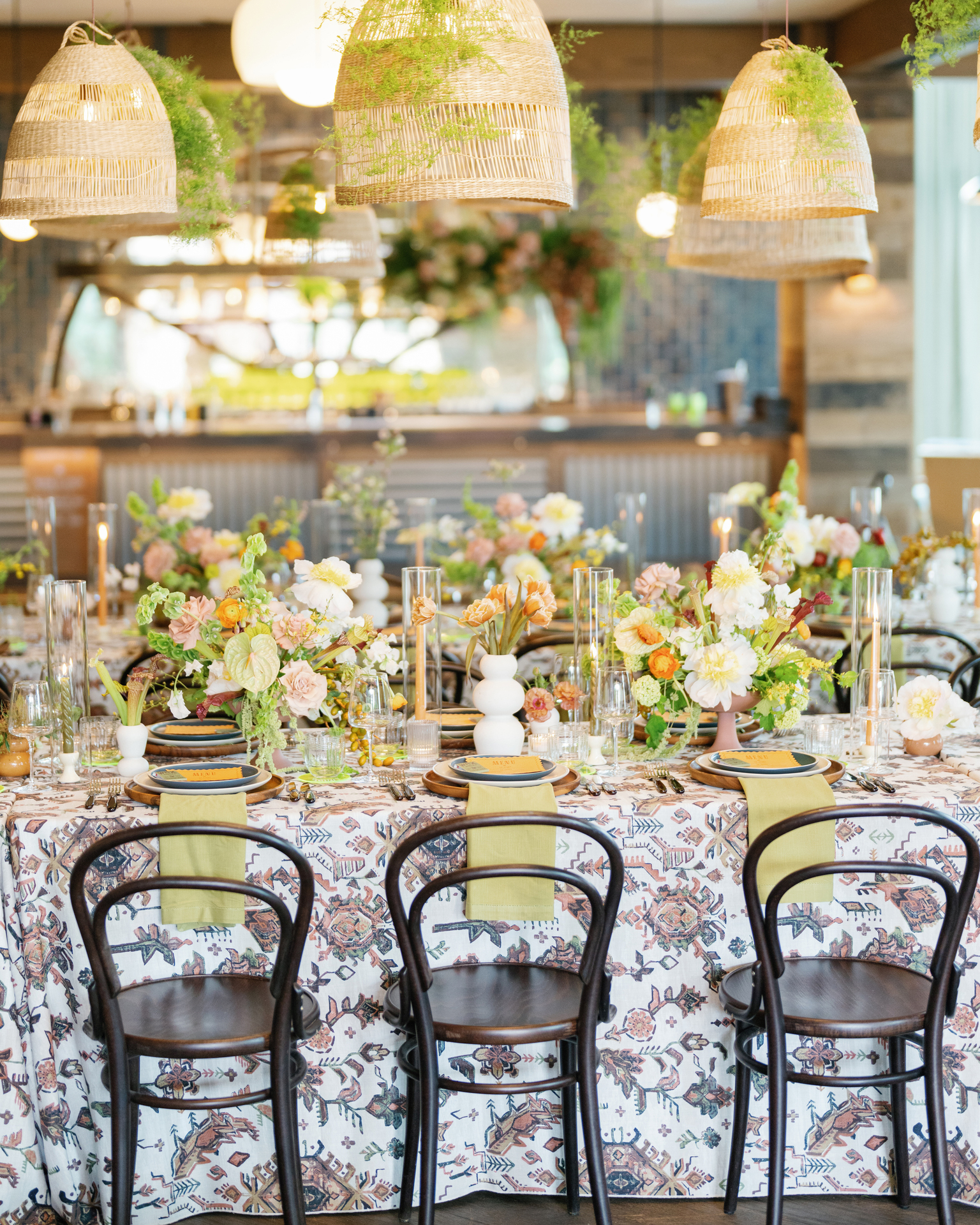 We could see this coming with Pantone’s color of the year prediction, Peach Fuzz. The thing we love about peach is that it plays well with other colors. Pair it with bright yellows and lavender for a super fun, funky setup or tone it down as a beautiful accent in your florals if you’re leaning more classic.