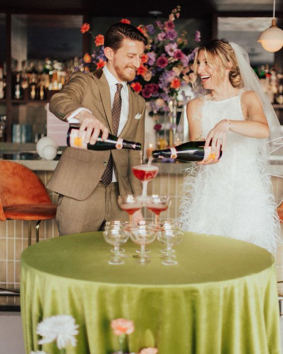 The last time you seriously thought about lime green might have been as a 2000s teen decorating your bedroom—who knew you’d get to use it again in your wedding decor? Organic, garden-themed weddings are trending and lime is the perfect touch to step this theme up a notch. Bedazzle actual limes with pearls and adorn your tables in lime green velvet.