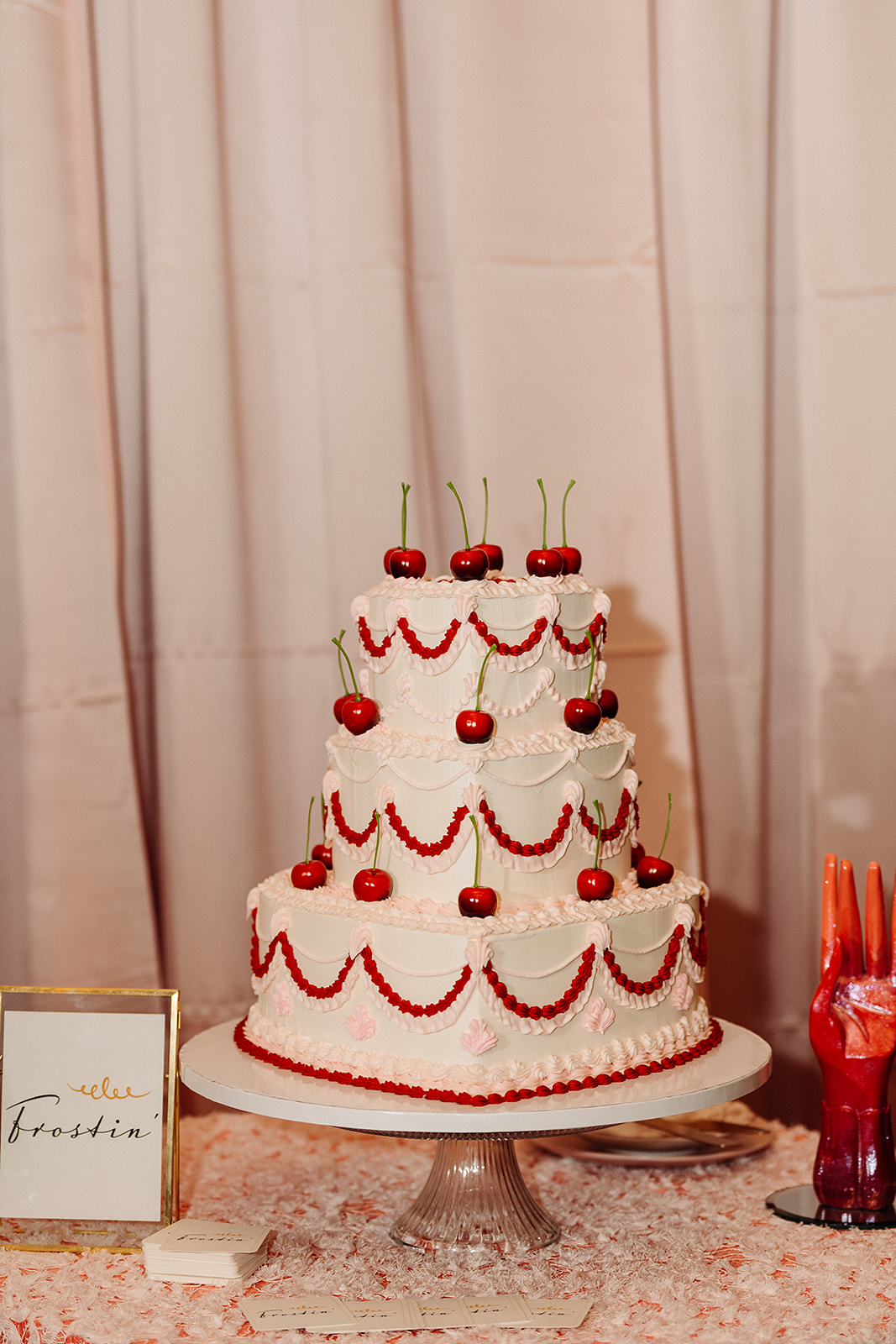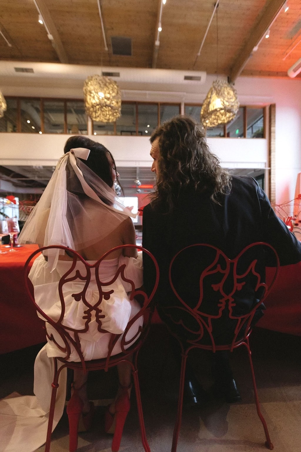 Our L’Angel sweetheart chairs added a special moment to the perfectly curated, romantic, red dining tables.