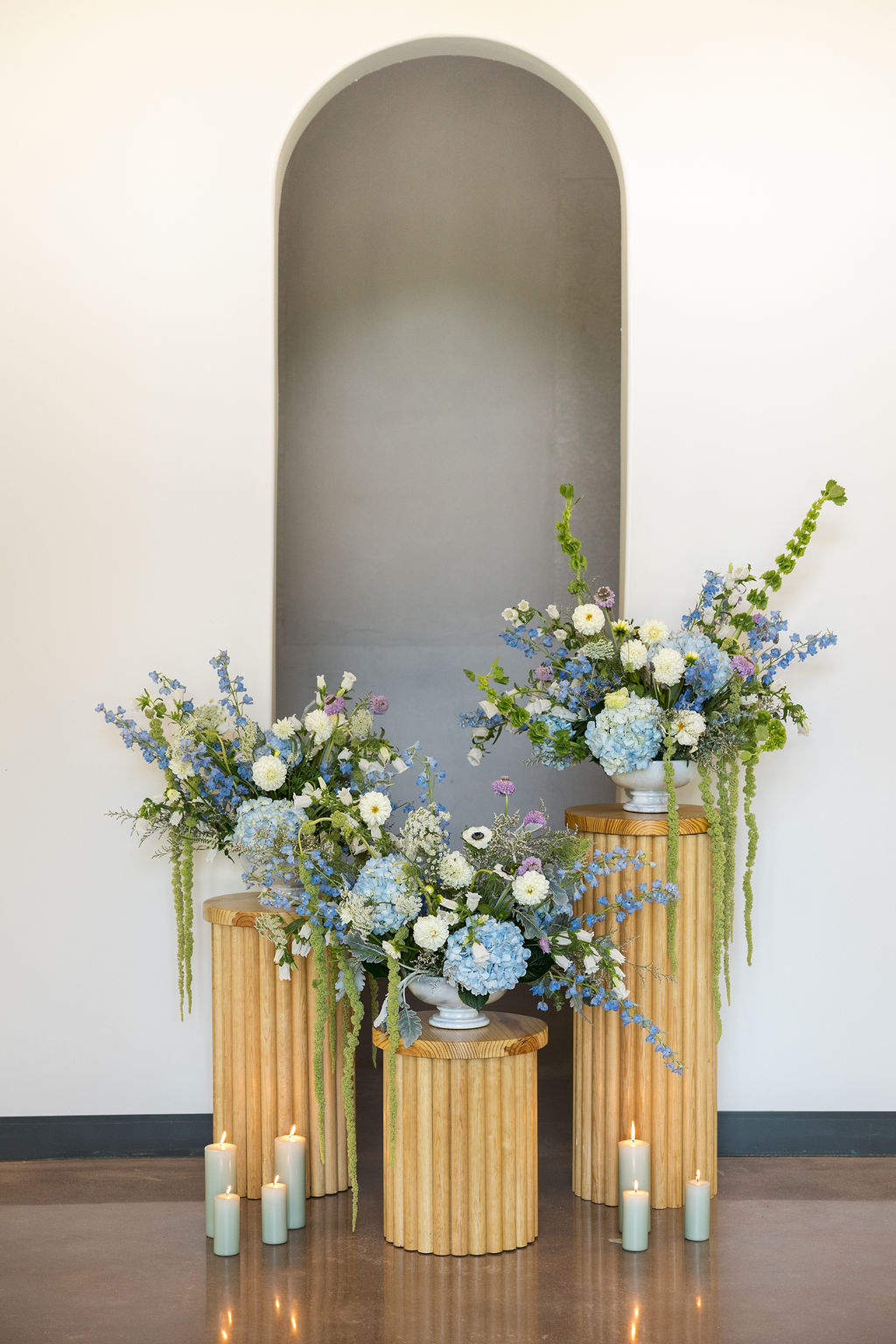 We are also big fans of creating fun moments with pillars, like our Fluted Pedestals. They look stunning with florals atop! You can either have a few at the end of your aisle to say your vows in front of, or flank the start of your aisle with two sets so that will appear in photos as you’re making your entrance. Repurpose them as a display for your cake at your reception and thank us later. 😉