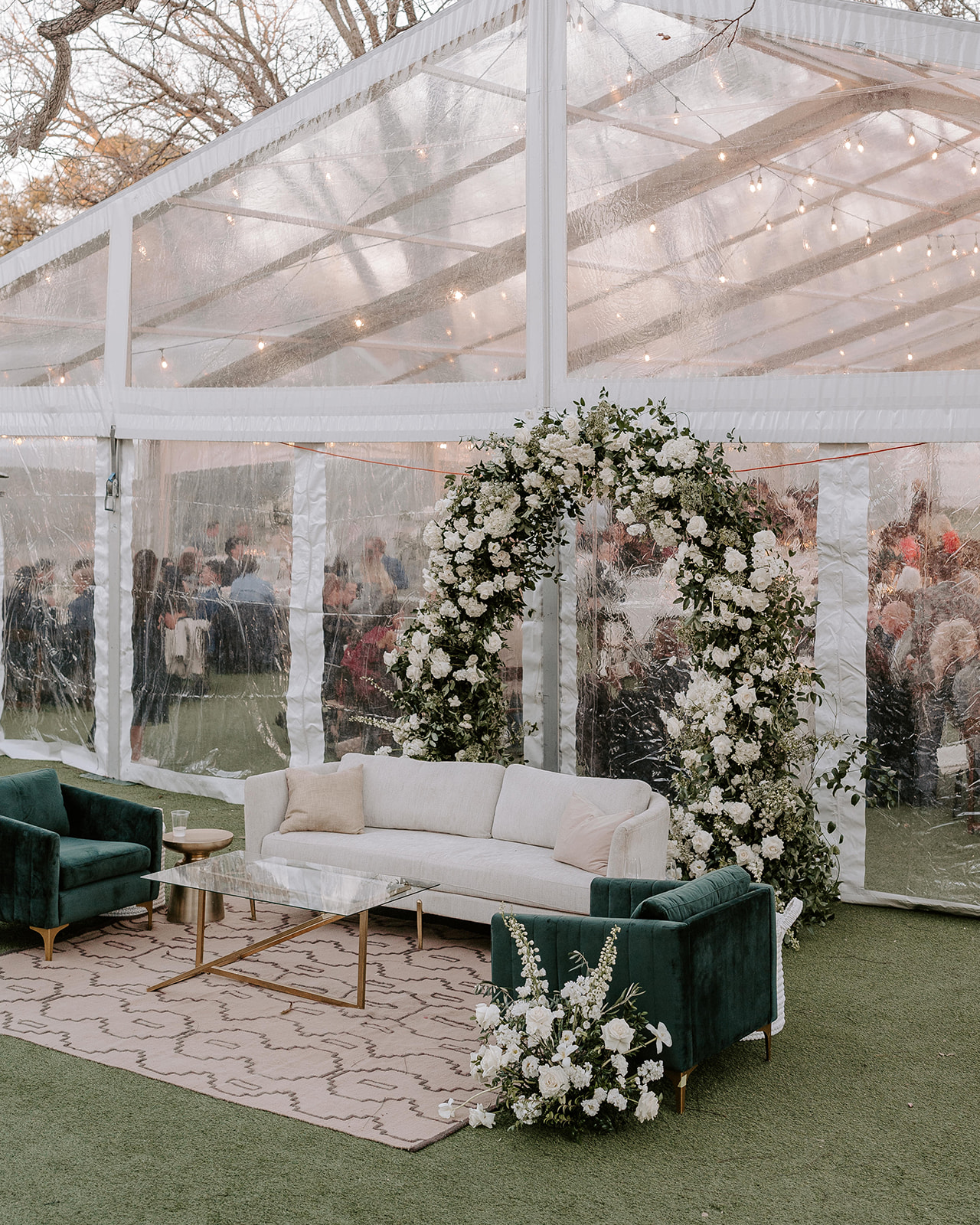 A lounge for cocktail hour is a non-negotiable in our book! Mia and Morgan’s guests enjoyed champagne and cocktails before dinner in the perfectly designed lounge which elevated the courtyard area.